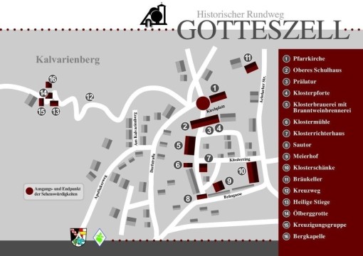 Pfarrdorf Gotteszell bestand aus zehn Anwesen, dem Klosterbau