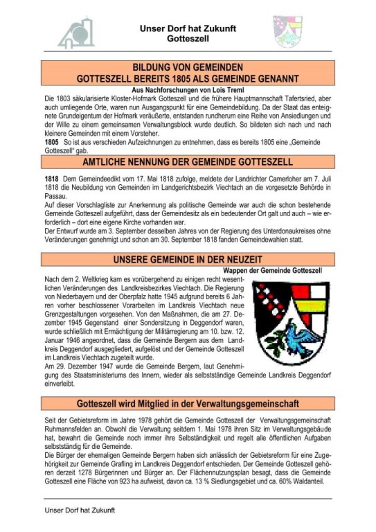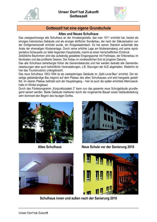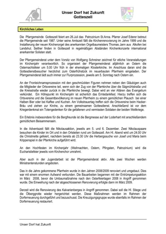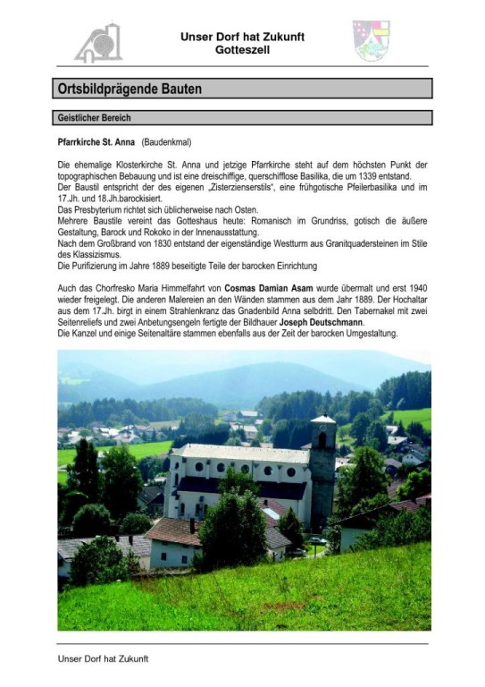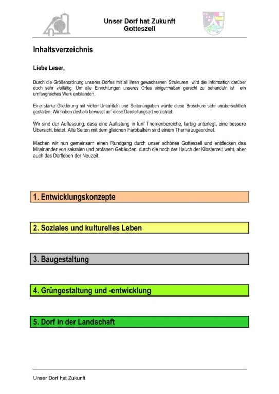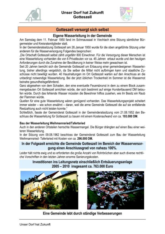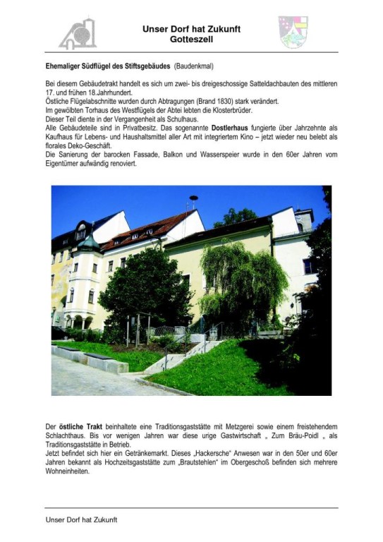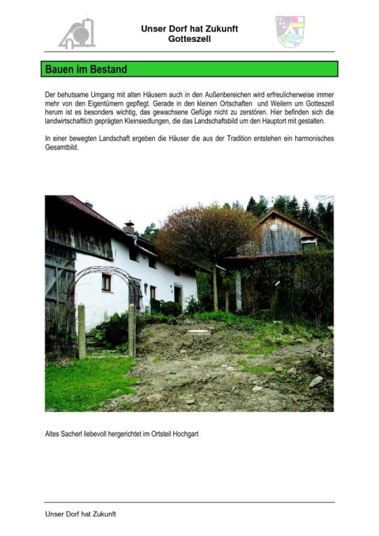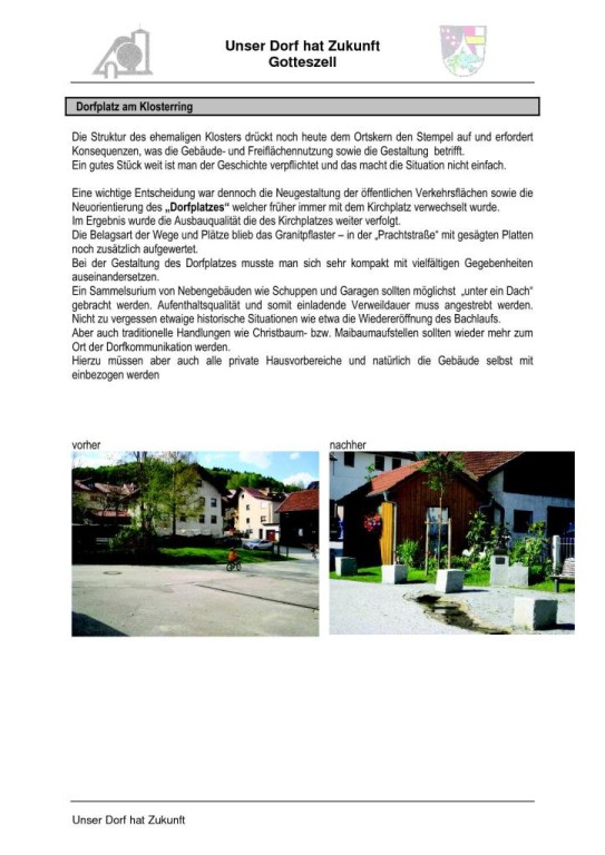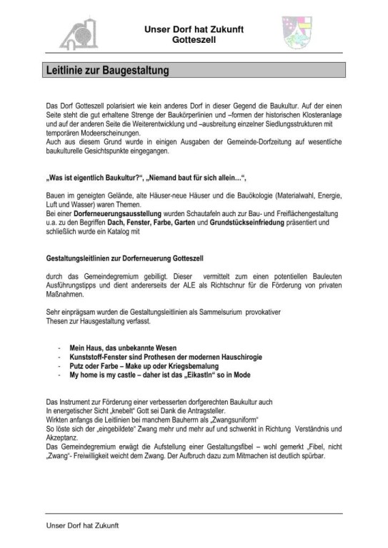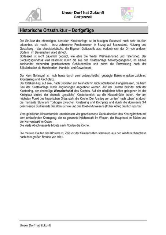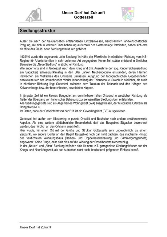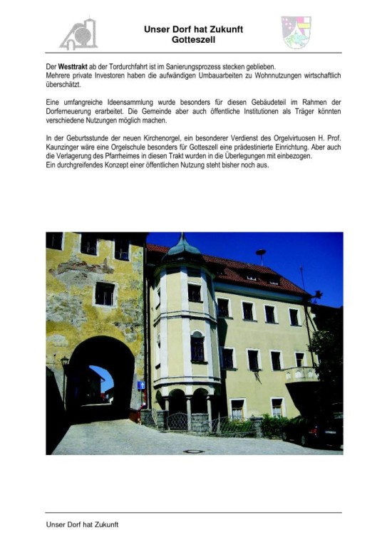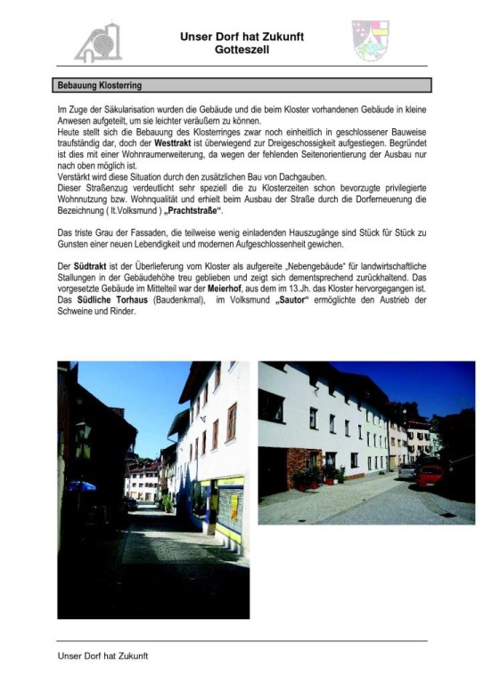 Die Gotteszeller hatten es daher schwer sich von den statischen Gegebenheiten zu lösen und dem Dorf einen neuzeitlichen Stempel aufzudrücken.