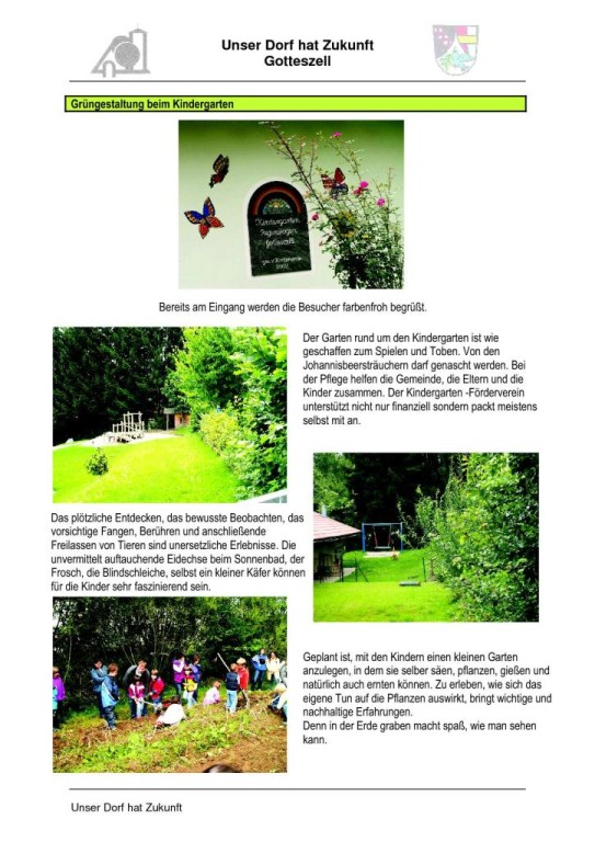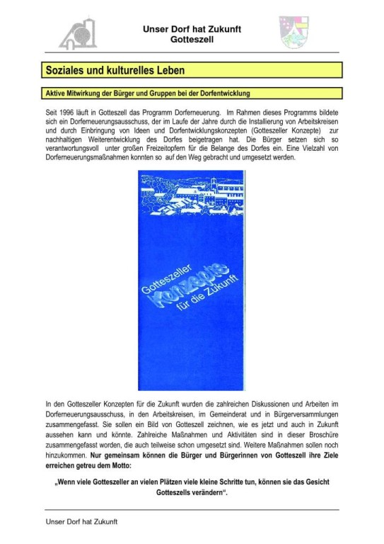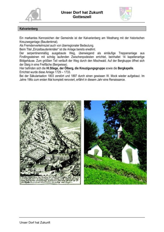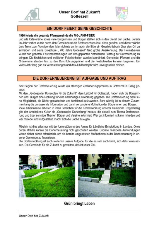 Allen Gotteszellern geht es um ein lebens- und liebenswertes Umfeld mit einer Neudefinition von Tradition und Modernem. Das ganze Dorf befindet sich nun in einem Wandel, dass ein nie endendes Ziel