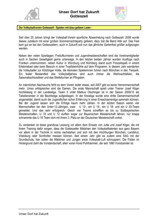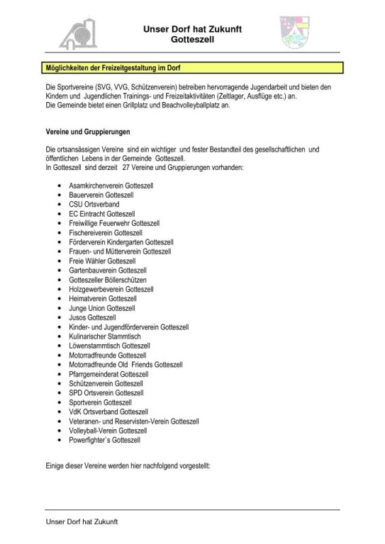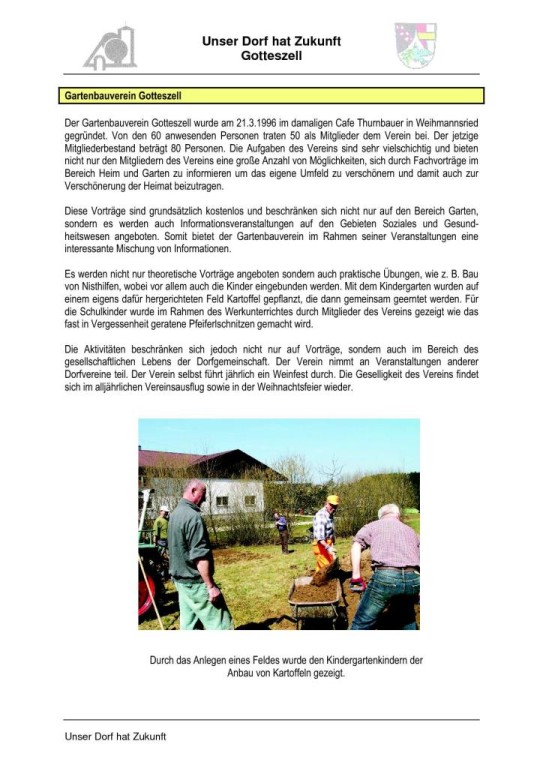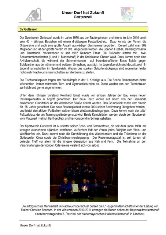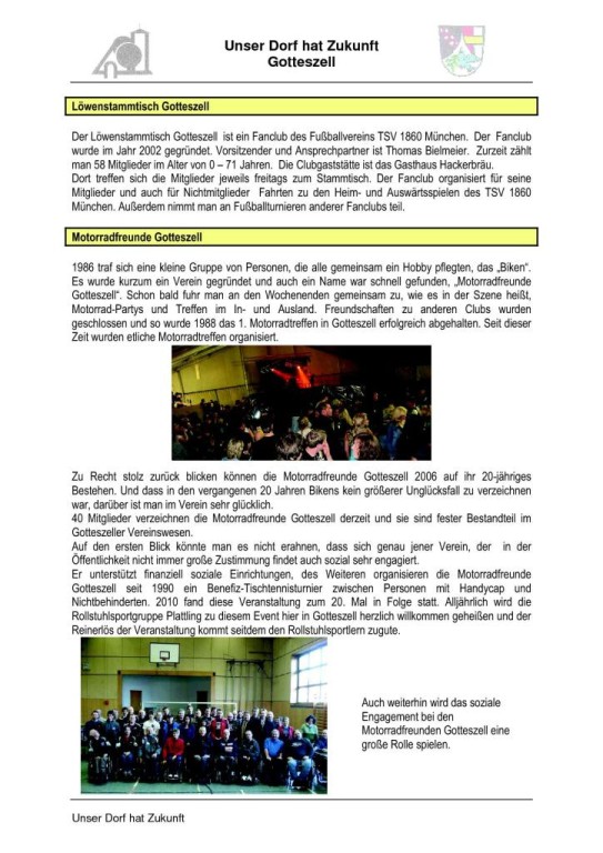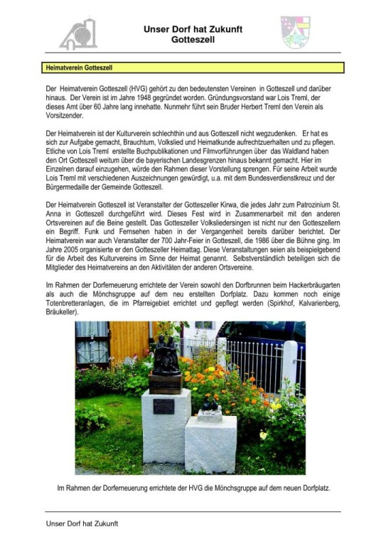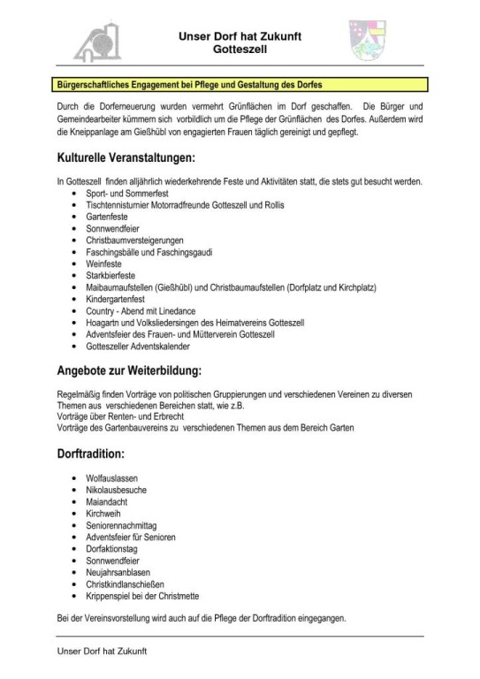 hat, unser Dorf als eine lebens- und liebenswerte Heimat zu stärken und den Nachkommen zu bewahren.